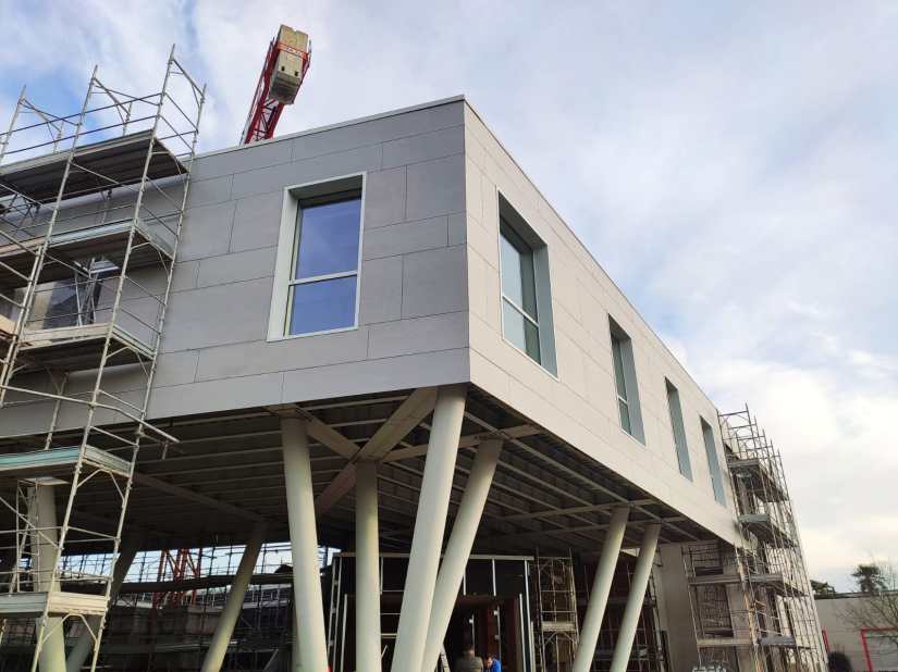 Rivestimento con lastre in fibrocemento colore “Pietra” con sistema di posa “a vista”