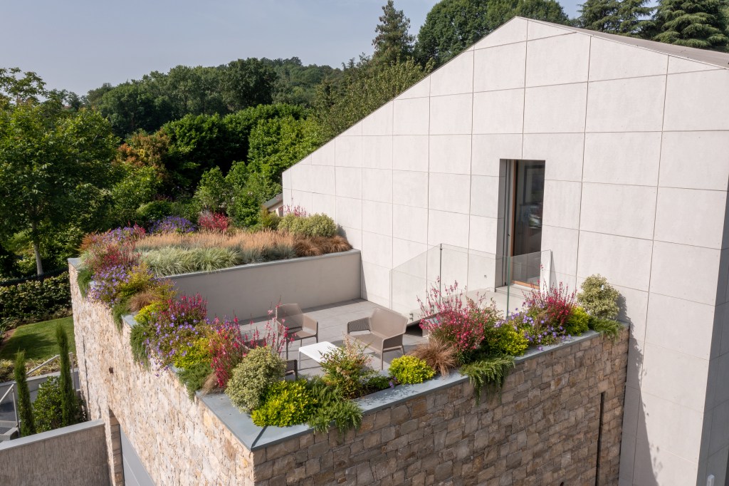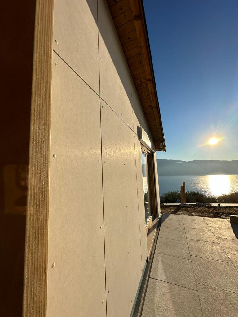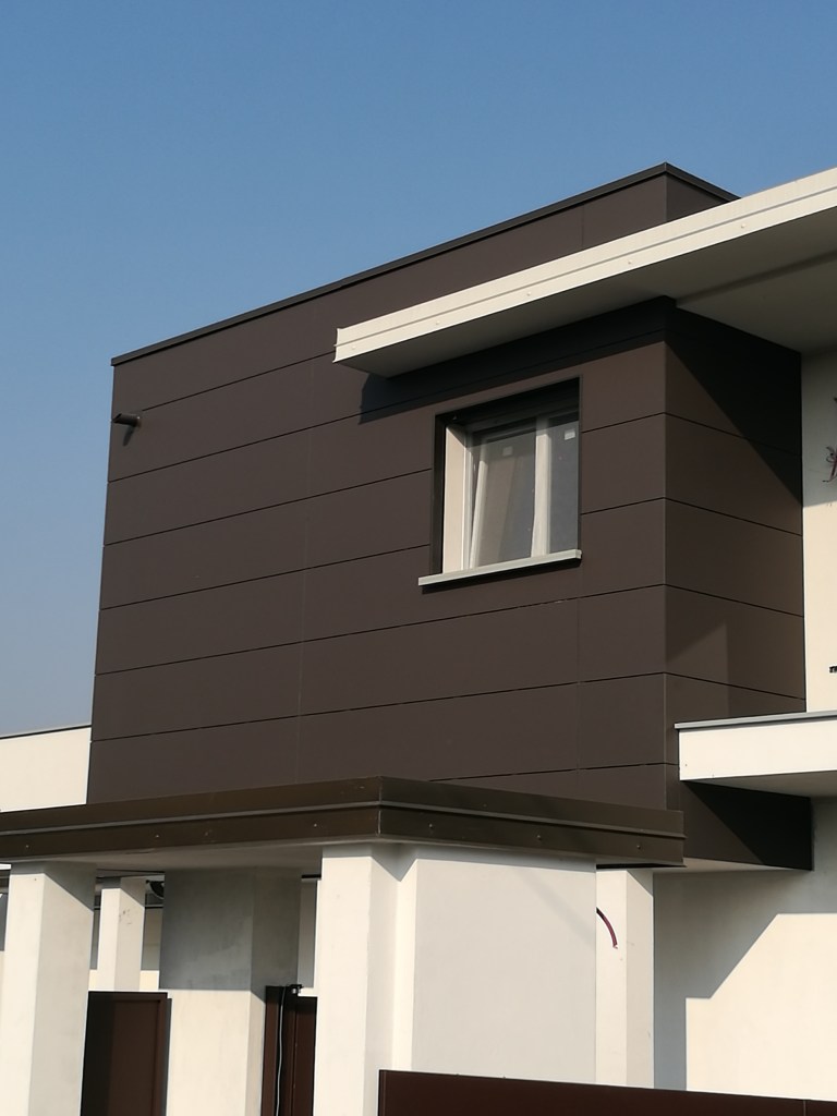 Rivestimento in fibrocemento per una villa privata in provincia di Bergamo. Il rivestimento è stato utilizzato sia per la facciata sia per la copertura del tetto.