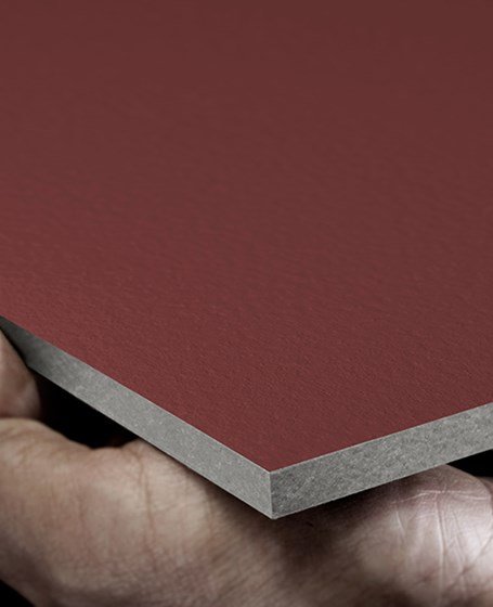 Materiale per facciate ventilate colorato in massa, caratterizzato da una superficie sabbiata e leggermente striata con sfumature di colore che danno al pannello un aspetto elegante e naturale.