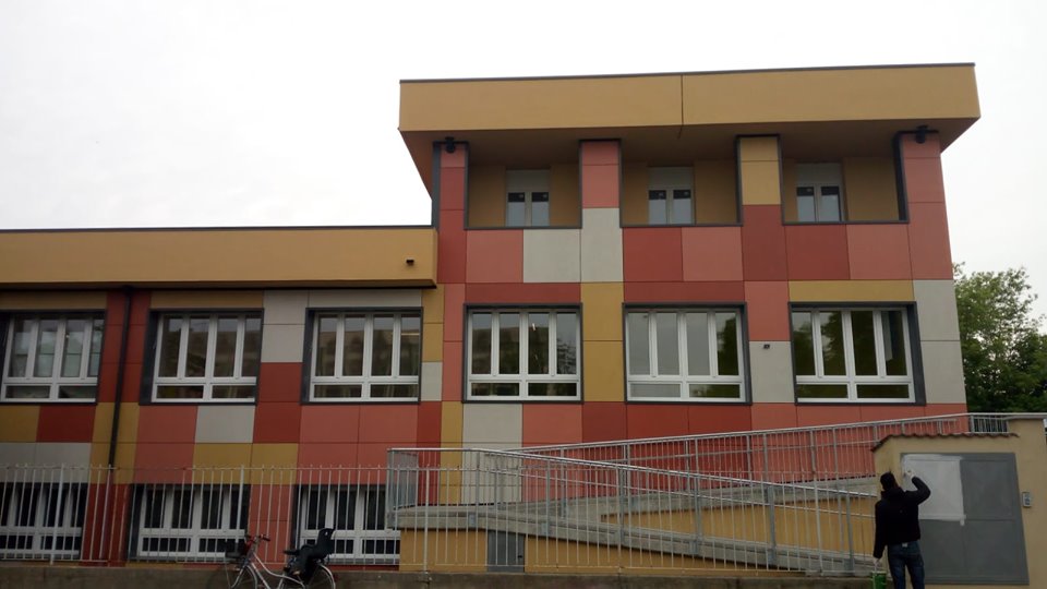 Il progetto ha coinvolto i bambini della scuola, trasformandoli in piccoli architetti e facendogli scegliere i colori del rivestimento